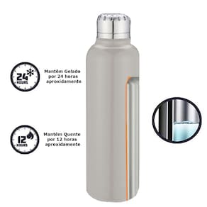Garrafa térmica de 500m inox Gold Sports com boca estreita. Muito eficiente na conservação da temperatura de bebidas geladas ou quentes e também segura muito bem o gás de refrigerantes. A tampa, sem bem fechada, veda totalmente a garrafa, impedindo respingos e vazamentos.Características: