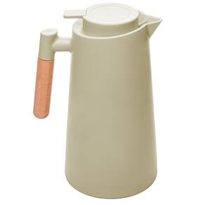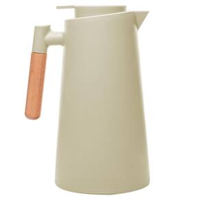Com um acabamento em tom de menta e um cabo de madeira, esta garrafa térmica apresenta um design contemporâneo refinado que se destaca em qualquer ambiente, adicionando um toque de sofisticação à sua mesa.