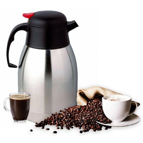 Garrafa Térmica Gatilho Café Da Manhã Mesa Posta Leite 2 litros Essa garrafa mantem a temperatura do seu café/água por muito mais tempo que as garrafas comuns, isso acontece por conta do seu sistema super eficiente de parede dupla com revestimento térmico lacrado a vácuo, isso permite manter o líquido quente por mais de 6H e frio até 12H, perfeita para levar ao camping, trilhas, piquenique e longas viagens de carro, pode ser também uma excelente opção para empresas onde muitas pessoas manuseiam a garrafa ao decorrer do dia essa garrafa é mais resistente a quedas do que as garrafas tradicionais de ampola de vidro.