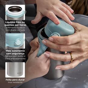 -Dupla camada com isolamento a vácuo, que ajuda a manter quentinho ou gelado por mais tempo.