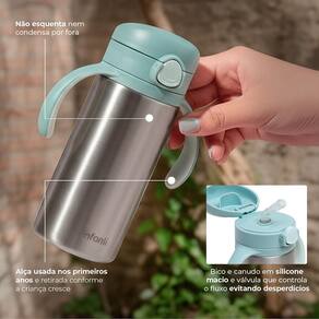 -Capacidade de 280 ml, na medida certa para caber na bolsa e manter o pequeno sempre hidratado.
