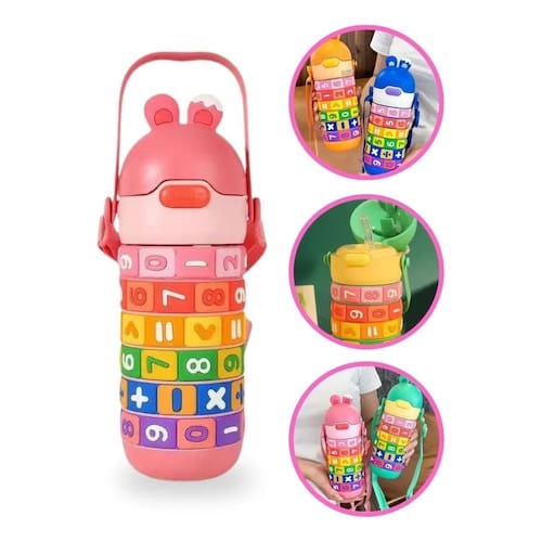 Garrafa Térmica Infantil De Água Canudo Escolar Tabuada Alça