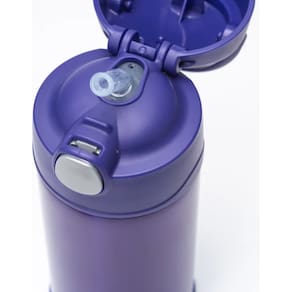 Projetada para mãos pequenas, a Thermos Funtainer F401 permite que a criança abra e feche com facilidade usando apenas uma mão, graças ao seu sistema de abertura intuitivo, ergonômico e higiênico, já que a tampa permanece fechada após o uso, sem contato com o ambiente. O canudo de silicone macio proporciona um toque suave ao beber, enquanto a alça externa integrada facilita o transporte, perfeita para a escola, passeios e atividades ao ar livre.