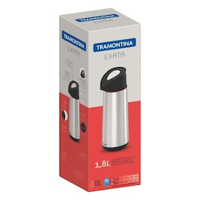 A Garrafa Térmica Tramontina em Aço Inox com Ampola de Vidro 1,8 L, que faz parte da linha Exata, é a garrafa térmica ideal para quem tem prazer em tomar um chimarrão, um chá ou um café quentinho! Você pode levá-la para qualquer lugar, pois com suas linhas atemporais e design clean ela será o destaque em qualquer ambiente. Possui uma alça embutida, garantindo um manuseio confortável e proporcionando uma sensação de estabilidade. Seu puxador para abrir a alça é intuitivo e traz botão de acionamento produzido em aço inox. Além disso, a garrafa conta com um sistema corta-pingos, evitando que as gotas indesejadas caiam após o servir. A garrafa é robusta, simples e moderna, ocupa menos espaço na sua casa e durante o transporte. Ela é leve e fácil de manusear, seu acabamento é texturizado fingertip free, o que evita marcas. A escolha ideal para você apreciar do melhor jeito.
