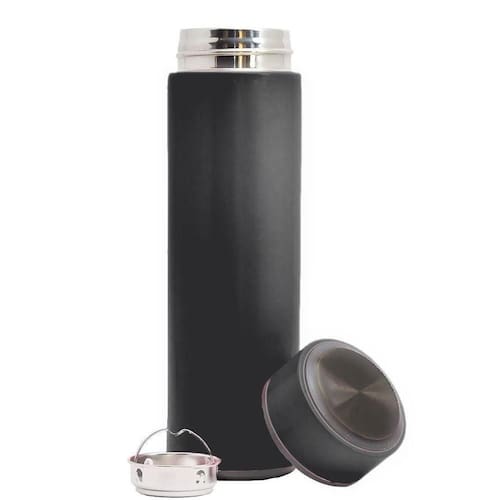 Garrafa térmica inteligente de inox 500ml tampa c/sensor de temperatura led água café chá - preto