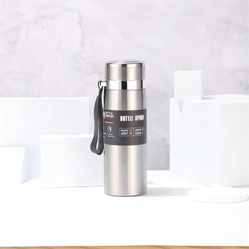 Garrafa Térmica Inox 800Ml Squeeze Camping Vedação Cor Prata