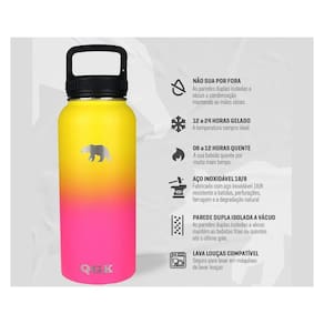 A garrafa térmica pe 24oz é um complemento necessário para suas caminhadas matinais, passeios de bicicleta, treinos e viagens diárias. Esta garrafa resistente é isolada a vácuo de parede dupla para manter a água fria até o último gole, pode ser lavada na máquina de lavar louça para facilitar a limpeza e vem como padrão com a tampa do chug.Garrafa térmica inox 946ml 32oz com tampa rosa e amarelo - qgka versão qgk da garrafa térmica pl 32 oz 946 ml, é projetada para manter suas bebidas em temperaturas desejadas por muito tempo, sendo quentes até 8 horas ou geladas até 12 horas . Fabricada em aço inox 18/8, e tampa rosqueável de giro rápido, seu design único e inovador, traz o toque extra de proteção, evitando que o calor ou frio escape.Resistente a batidas, perfurações, ferrugem e degradação natural.Produto livre de bisfenol a. 100% bpa free.Graças às paredes duplas isoladas a vácuo, você transpira, mas ela nunca.Simples de lavar é também resistente para ser lavada na máquina de lavar louças.Informações técnicas:marca: qgkmodelo: garrafa térmica pl 32 oz 946 ml qgk com tampacores disponíveis: rosa/amarelodimensões: comprimento 9cm x largura 9cm x altura 22cm s/ tampa e 27cm c/ tampa peso: 398 gramas Garrafa com garantia vitalicia contra defeitos de fabricação / tampa com 90 dias de garantia