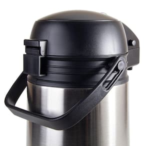Garrafa Térmica Aço Inox Basic Airpot 1,9 L TermoproA Garrafa Térmica Aço Inox Basic Airpot 1,9 L Termopro é produzida em aço inoxidável escovado de alta qualidade, com dupla camada protetora e ampola em inox inquebrável. Possui sistema para servir "abre e fecha" e isolante térmico que mantém as bebidas quentes por até 9h e frias por até 20h. Muito resistente e fácil de limpar, com design moderno, botão para acionamento que potencializa a pressão e facilita a saída do líquido e alça retrátil para transporte com praticidade.