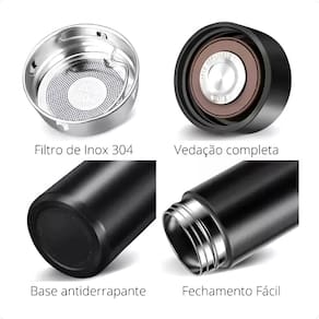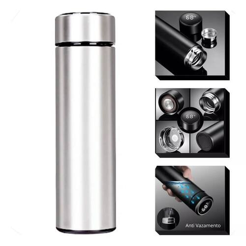 - A garrafa térmica inteligente inox portátil possui acabamento de altíssima qualidade, com uma incrível tela LED, localizada na tampa. sensível ao toque, ela te mostra, em tempo real, a temperatura interna da garrafa.