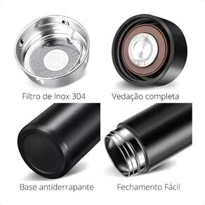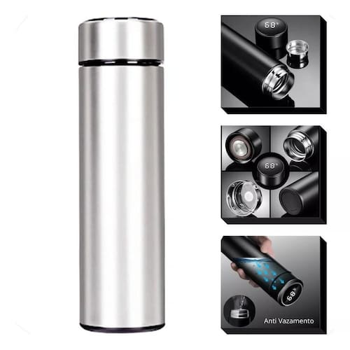 - a garrafa térmica inteligente inox portátil possui acabamento de altíssima qualidade, com uma incrível tela led, localizada na tampa. Sensível ao toque, ela te mostra, em tempo real, a temperatura interna da garrafa.