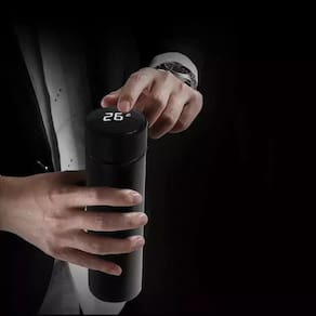 Ao tocar suavemente na parte superior da tampa da garrafa, você pode verificar a temperatura da bebida dentro em qualquer lugar e a qualquer momento para beber da maneira mais adequada. Modelo em aço inoxidável com isolamento a vácuo, que mantém por longo tempo a temperatura dos líquidos.