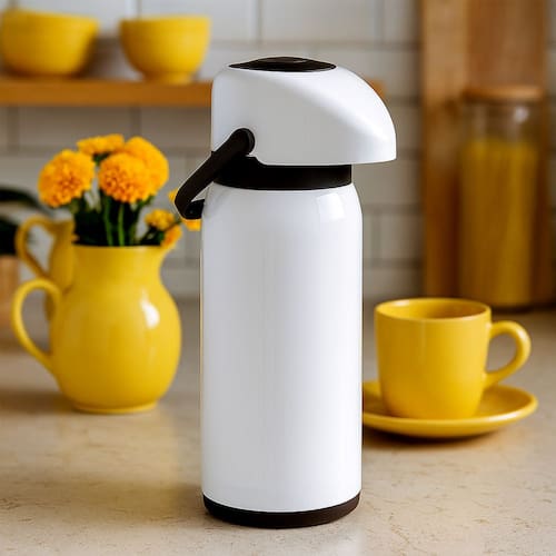 Apresentamos a Garrafa Térmica 1,8 Litro Branca com Tampa e Alça em Polipropileno, Ampola de Vidro e Acionamento por Pressão — perfeita para manter suas bebidas na temperatura ideal por muito mais tempo.
