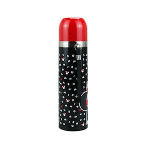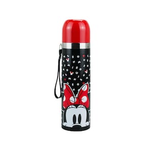 A Garrafa Térmica Minnie 500ml - Disney é o acessório ideal para manter suas bebidas quentes ou frias por mais tempo, com muito estilo e diversão. Fabricada em aço inoxidável na cor preta, possui capacidade para 500ml e estampa temática da Minnie, um dos personagens mais queridos da Disney. No entanto, não é possível beber diretamente do bico da garrafa.