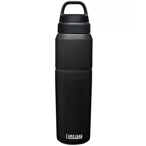 • 2 em 1: garrafa + copo• Isolamento térmico a vácuo• líquido frio por até 12h e líquido quente por até 4h• Livre de BPA, BPS e BPF• Pode ser lavada em lava louças• Base em silicone garante melhor grip nas superfíciesGarrafa CamelBak Multibev é uma verdadeira 2 em 1, pois tem integrada ao seu corpo um copo térmico com tampa de silicone.Garrafa ideal para o dia a dia, academia e atividades outdoor, como camping, hiking e trekking.Possui isolamento térmico a vácuo, garante a temperatura do líquido por mais tempo. Capaz de manter o líquido frio por até 12h e quente por até 4h.Encaixado na garrafa vai um copo também com isolamento térmico, e na sua tampa tem acoplada uma tampa de silicone para o copo.Gancho na tampa garante conforto ao carregar a garrafa com os dedos e também é útil para prender em algum ponto da mochila, com um mosquetão.Informações gerais:• Material: Aço Inoxidável e Propileno• Peso do produto: 590 g• Capacidade: 650ml• Medidas: 8 l x 8 c x 29,5 a cm• Marca: CamelBak