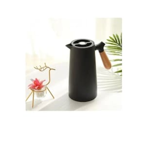 Garrafa termica nordica cabo de madeira botão anti vazamento Cor: preta Garrafa térmica nórdica cabo de madeira botão anti vazamento