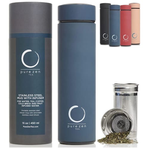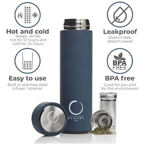 Garrafa Térmica para Água 440mL em Aço Inoxidável com Infusor para Bebidas Quentes, Pure Zen Tea, Azul