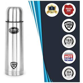 TECNOLOGIA VACUSTEEL: A Tecnologia Vacusteel é esta colaboração única de aço e vácuo para um isolamento superior, que permite que a bebida permaneça quente ou fria por horas prolongadas. O frasco possui uma elegante cor prateada, agregando um toque de sofisticação e estilo à sua rotina diária de hidratação. MATERIAL: O violoncelo usa aço inoxidável de alta qualidade 18, 8 e possui uma camada termoseal com revestimento de cobre para oferecer um dos melhores desempenhos em retenção de calor. BOCA ESTILO FLIP E TAMPA ESTILO COPO: Para evitar o risco de derramamento, o frasco Cello Flipstyle vem com uma tampa flip top resistente e à prova de vazamentos que torna beber e servir sem complicações. Além disso, a tampa principal funciona como um prático copo, proporcionando uma solução prática para desfrutar das suas bebidas favoritas em qualquer lugar. Este frasco vem com uma jaqueta ou bolsa elegante e funcional que não apenas adiciona uma camada extra de isolamento, mas também fornece uma solução de transporte conveniente. PROJETO À PROVA DE VAZAMENTOS: Este frasco apresenta um design à prova de vazamentos, proporcionando tranquilidade ao carregá lo em sua bolsa ou mochila. Diga adeus às preocupações com derramamentos ou gotejamentos, pois a vedação segura do frasco garante que suas bebidas permaneçam contidas e sem sujeira. USO: Esteja você no escritório, em casa ou em viagem, este frasco de aço isolado foi projetado para atender às suas necessidades de bebidas. Ele mantém suas bebidas quentes bem quentes e suas bebidas frias refrescantemente frescas, tornando o um companheiro ideal para deslocamentos diários, horas de trabalho, relaxamento em casa ou embarque em aventuras de viagem Marca: Não Informado