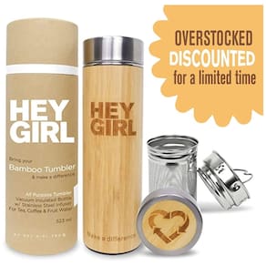 Garrafa Térmica para Água 530mL em Aço Inoxidável com Infusor para Bebidas Quentes, Hey Girl Tea, Marrom