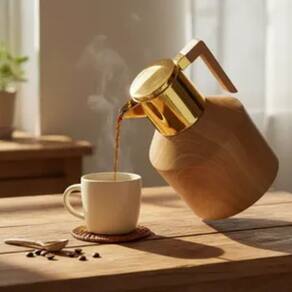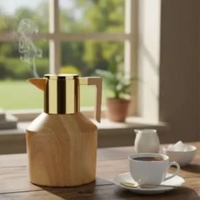 Garrafa Térmica Para Café Chá 1lt. Madeira Clara Bico Dourado