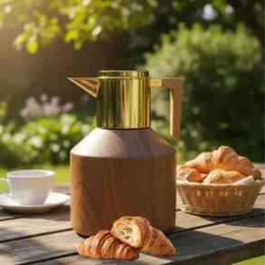Garrafa Térmica Para Café Chá 1lt. Madeira Escura Bico Dourado