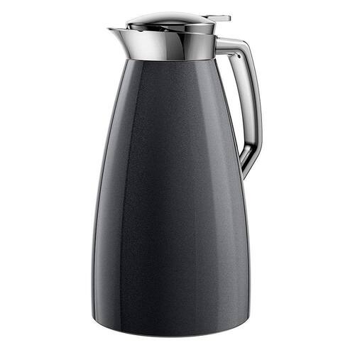 Garrafa Térmica Plaza Quick Press Emsa Carbono 1 LitroCom um lindo design elegante e atemporal, a Garrafa Térmica Plaza Quick Press da alemã Emsa mantém sua bebida quente por até 12 horas e fria por até 24 horas.Com capacidade para 1 Litro e 100% a prova de vazamentos, a garrafa abre confortavelmente utilizando apenas uma mão, basta apertar o botão.Além disso, a Garrafa Térmica Plaza possui uma tecnologia chamada "Aroma Diamond", que preserva a característica mais importantes do café, que é o aroma, devido ao seu formato único de diamante no interior da Garrafa.Fabricado pela empresa alemã Emsa, que além de focar na qualidade dos seus produtos, se preocupa com o meio ambiente: faz uso apenas de matéria prima 100% segura, otimiza sua cadeia de carbono e poupa recursos, desde a produção até a embalagem.
