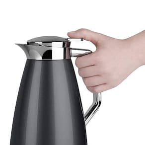 Garrafa Térmica Plaza Quick Press Emsa Carbono 1 LitroCom um lindo design elegante e atemporal, a Garrafa Térmica Plaza Quick Press da alemã Emsa mantém sua bebida quente por até 12 horas e fria por até 24 horas.Com capacidade para 1 Litro e 100% a prova de vazamentos, a garrafa abre confortavelmente utilizando apenas uma mão, basta apertar o botão.Além disso, a Garrafa Térmica Plaza possui uma tecnologia chamada "Aroma Diamond", que preserva a característica mais importantes do café, que é o aroma, devido ao seu formato único de diamante no interior da Garrafa.Fabricado pela empresa alemã Emsa, que além de focar na qualidade dos seus produtos, se preocupa com o meio ambiente: faz uso apenas de matéria prima 100% segura, otimiza sua cadeia de carbono e poupa recursos, desde a produção até a embalagem.