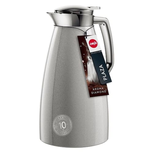 Garrafa Térmica Plaza Quick Tip 1l Emsa Prata Tenha na sua mesa uma garrafa térmica da Emsa, que é prática, versátil e duradoura para compartilhar os melhores momentos do café de manhã e do café da tarde, a Plaza prata combina toda praticidade com um design único. Especificações do produto: - Design inovador com cor prata dando destaque a mesa;- 100% a prova de vazamentos;- Aço inox 18/10 resistente à riscos e corrosão;- Sistema Aroma Diomond que mantém o aroma do café e intensifica seus sabores devido ao design do compartimento de vidro;- A bebida fica fria por 24 horas e quente por 12 horas;- Sistema quick press, só utilizar uma mão para abrir a garrafa;- Lavar a mão. Não vai a lava louças.Ficha técnica:- Código: 4080050523- Marca: Emsa- Modelo: Plaza Quick- Conteúdo da Embalagem: 1 Garrafa Térmica- Material: Superfície de plástico, aço inox e compartimento interior de vidro- Capacidade: 1 Litro- Peso: 1,04kg- Dimensões: 27cm x 13,8cm x 15,9cm (AxLxP)- Garantia: 10 anos Altura - 27,00 Largura - 13,8 Profundidade - 15,9 Peso - 1,04 Sobre a Marca - Há 70 anos no mercado, a EMSA carrega o legado de conforto e praticidade para sua casa, inspirando todo dia com os melhores produtos, funcionalidades e designs, dando destaque a sua casa. A EMSA baseia sua cultura num mundo melhor, hoje e amanhã, fabricando os materiais com energia eficiente de maneira sustentável.