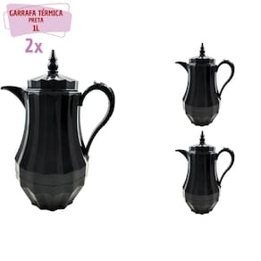 GARRAFA TÉRMICA VINTAGE PRETO A garrafa térmica de 1 litro na cor preto é uma opção clássica e versátil para manter suas bebidas na temperatura ideal por longos períodos de tempo. Seu design elegante e discreto, todo em preto, confere um aspecto sofisticado e moderno. Com capacidade para 1 litro, essa garrafa térmica é perfeita para acompanhar suas atividades diárias, desde viagens e passeios ao ar livre até o uso no escritório, mantendo suas bebidas quentes ou frias. Informações complementares: Modelo: Vintage Cor: Preto Material: Aço inoxidável, vidro temperado e plástico de alta qualidade Altura: 31cm Largura: 25cm Capacidade: 1 Litros Peso Unitário: 0,541g