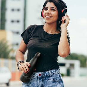Garrafa térmica para água e outras bebidas Com a Tecnologia de Parede Dupla a Vácuo, sua água fica geladinha até o final – até o último gole e até o fim da atividade física!
