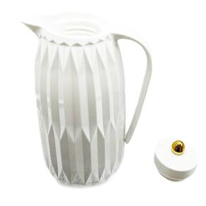 Experimente a qualidade desta garrafa térmica com a qual você poderá desfrutar de qualquer infusão. Leve-a para onde quiser e prepare seu café, chá ou suco rapidamente. Garrafa Térmica Resistente 1L Jade Branca Linha Horizontal