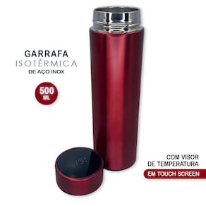 Garrafa Térmica Squeeze até 24 Horas com Medidor Tempratura Garrafa Térmica com Termômetro Digital 500ml Essa garrafa térmica inteligente vem com termômetro digital para mostrar exatamente a temperatura do seu interior. Acabamento de altíssima qualidade, torna o produto mais atraente e elegante. A tela LED localizada na tampa da garrafa, informa a temperatura interna com um simples toque e em tempo real. Não necessita de recarga, já vem com bateria de alta durabilidade. Para reforçar ainda mais sua qualidade, é feita em aço inox, que ajuda a manter a temperatura por até 24 horas. garrafa perfeita para ser Utilizado no dia a dia, prática e compacta, vem com cestinha de infusão para tomar chás e sucos detox. ESPECIFICAÇÕES: - Material: Aço Inox e Plástico - Tamanho: 22,5cm altura x 6,5cm diâmetro - Peso: 250g aprox. - Capacidade: 500ml - Cor: Vermelha CONTÉM: 01 Garrafa Térmica com Termômetro Digital 500ml Vermelha Marca: Não Informado Ean: 7893196317204