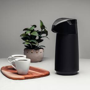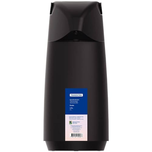 Garrafa Térmica Tramontina Exata 1L para Café Água Chá em Plástico com Ampola de Vidro Preta.