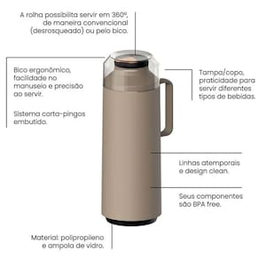 Garrafa Térmica Tramontina Exata em Plástico Bege com Ampola de Vidro 1L Bule Térmico Servir Café