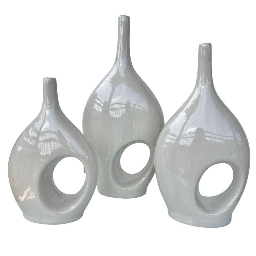 Trio vaso garrafa verde oliva em cerâmica enfeite de mesa