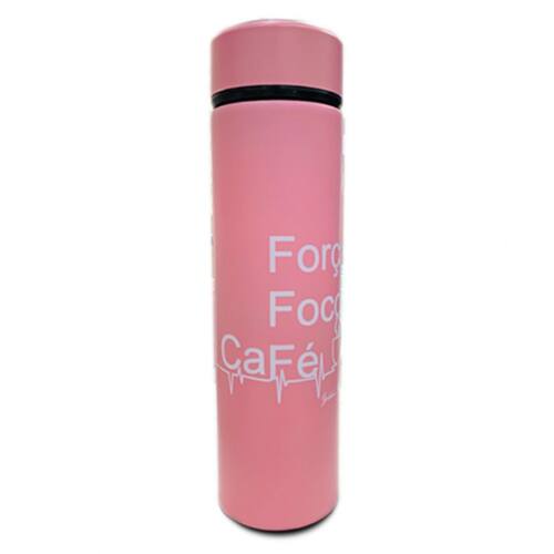 Garrafa Térmica Rosa Inox com Display LED e Termômetro – Elegância e Praticidade em Cada GoleDescrição do Produto:A Garrafa Térmica Rosa Inox com Display LED e Termômetro foi desenvolvida para quem busca praticidade, estilo e eficiência no dia a dia. Fabricada com aço inoxidável 304, oferece alta durabilidade e desempenho superior na conservação da temperatura. Com capacidade de 470ml, mantém suas bebidas quentes ou frias por até 12 horas, garantindo o sabor e a temperatura ideal em qualquer ocasião.O destaque dessa garrafa é seu display LED inteligente na tampa, que permite verificar a temperatura do líquido com um simples toque. Seja no trabalho, na academia, em viagens ou na escola, você pode desfrutar de sua bebida preferida na temperatura certa, sem surpresas.Além disso, o design moderno em inox rosa, com frases exclusivas e motivadoras, como "Força, Foco & Café" ou "Não me leve a sério, me leve quente" (enviadas aleatoriamente), transforma essa garrafa em um acessório elegante e funcional para o seu dia a dia.Diferenciais do Produto:Tecnologia Inteligente: Controle de temperatura com termômetro digital na tampa.Conservação de Temperatura: Mantém líquidos quentes ou frios por até 12 horas.Sistema Antivazamento: Segurança e praticidade para transportar em bolsas ou mochilas.Material Premium: Aço inoxidável 304 de alta resistência e tampa com controle de temperatura LED.Portabilidade: Leve e compacta, pesando apenas 267g e medindo 23,5cm de altura e 6,5cm de diâmetro.Cuidados e Orientações:Lavar com sabão neutro e água morna.Evitar quedas e impactos na tampa com LED para preservar o funcionamento do termômetro.Não utilizar no micro-ondas, forno ou congelador.Para medições mais precisas, certifique-se de que a tampa esteja em contato com o líquido.Especificações Técnicas:Material: Aço inoxidável 304 + ABS.Capacidade: 470ml.Dimensões: 23,5cm x 6,5cm.Peso: 267g.Bateria Interna: CR2450 3V 600mAh (fácil substituição).Cores Disponíveis: Rosa com frases motivadoras (enviadas aleatoriamente).Garantia de Qualidade:Para sua tranquilidade, esta garrafa térmica conta com garantia de 3 meses contra defeitos de fabricação. Nossa equipe de suporte está à disposição para garantir a melhor experiência de compra.Invista na combinação perfeita entre funcionalidade, estilo e inovação. Adquira já a Garrafa Térmica Rosa Inox com Display LED e transforme sua rotina!
