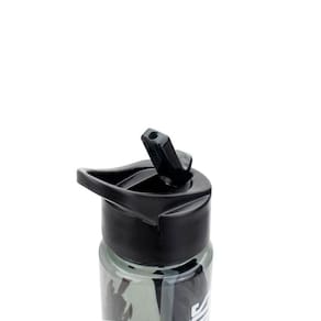 Garrafa de plástico com canudo retrátil usualmente usado para academia. Capacidade para 700 ml, tampa rosqueável com apoio para dedos. Aperte a garrafa para tornar o jato mais forte.