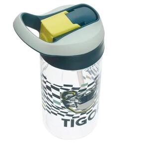 Garrafa de plástico Tigor que conta com canudo, alça para pendurar e silk frontal.