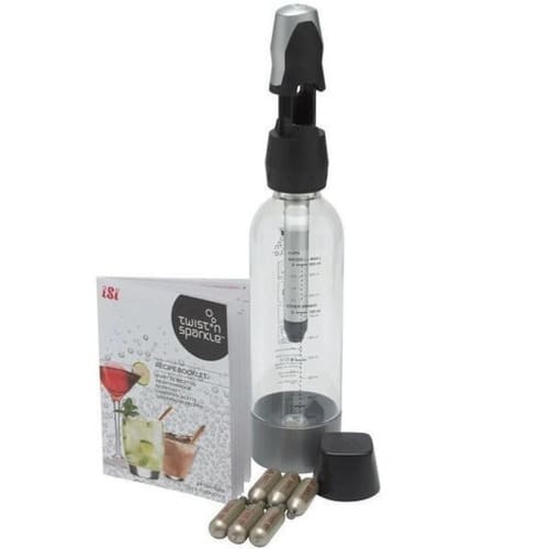 Garrafa Twist'N Sparkle Gaseificador De Coqueteis Isi Twist'n Sparkle Gaseificador de Coqueteis GingerBeer com 6 cápsulas de CO2 (ISI) de Capacidade: 950ml para água, e 720ml para outros drinks Para água gaseificada refrescante & muitas outras bebidas espumantes. Para carbonar água, bebidas e coquetéis não alcoólicos. Corpo da garrafa de PET Elementos de operação de plástico Garantia: Contra defeitos de fabricação - As imagens dos produtos são meramente ilustrativas.