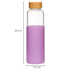 Garrafa Vidro Plasvale Com Silicone Roxo 550ml Tampa Bambu