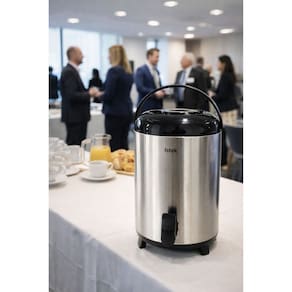 Compatibilidades: Líquidos: Água, café, sucos, chás, achocolatados. Uso: Canteiros obra, acampamentos, festas, igrejas, refeitórios industriais.Especificações de Uso:Abastecer reservatório deixando margem segurança tampa. Utilizar pés retráteis para elevar torneira facilitando encaixe copos. Acionar alavanca torneira para baixo fluxo constante. Certificar aperto tampa para manutenção vácuo térmico.