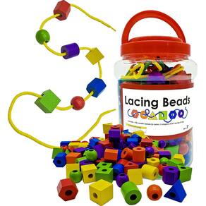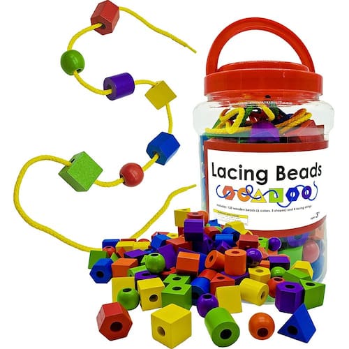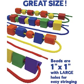 Brinquedos para habilidades motoras finas, como formas de cadarço gigantes e miçangas com cordão, ajudam crianças pequenas e pré-escolares a desenvolver habilidades importantes enquanto se divertem. Nosso conjunto de miçangas de 120 peças com 4 cordões coloridos ensina cores, formas, destreza, padrões e muito mais. Destinado à terapia, desenvolvimento e atividades, este brinquedo pode ser para aprendizado e entretenimento. É um ótimo presente de aniversário para crianças com autismo ou necessidades especiais. Todas as idades se divertirão amarrando e empilhando essas contas.