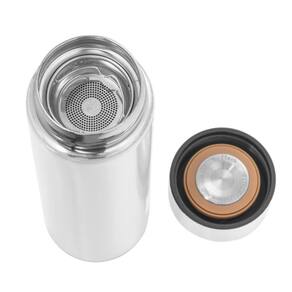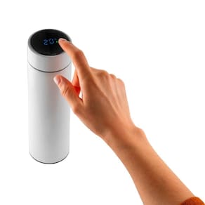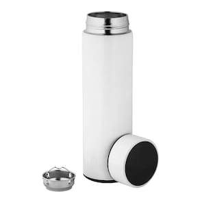 Garrafa / squeeze / caramanhola térmica em inox 470 ml. Possui termômetro digital na tampa e infusor de chá. Possui parede dupla isolada a vácuo. Acompanha caixa presente. Mantém bebidas quentes por até 8 horas e frias por até 24 horas. Especificações: Material: aço inoxidável Capacidade: 470 ml Possui termômetro digital na tampa Parede dupla isolada a vácuo Altura 22,9 cm Circunferência 6,5 cm Obs: não mergulhe a tampa em água, limpe somente com um pano umidecido, não leve ao freezer. Ean: 7908335214068 Marca: Não Informado