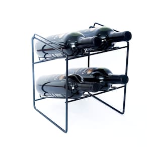 Garrafeiro Mini Empilhável Suporte Garrafas Preto Jomer 2437 Este produto está disponível em aço carbono pintado preto fosco. Tem capacidade para 4 garrafas e seu empilhamento máximo é de 4 peças. Medidas totais: 230x265x245mm Código: 2437 - Preto Imagem Ilustrativa.