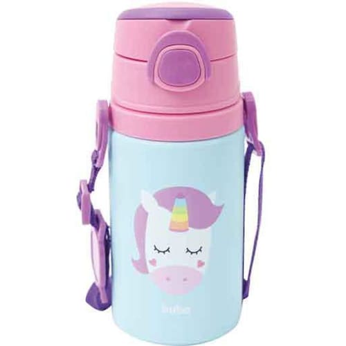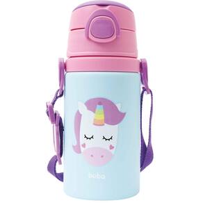 Garrafinha Alumínio Canudo Animal Fun Unicórnio 400Ml Buba