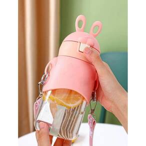 Garrafinha de água temática infantil garrafa kids coelho cor: rosa claro a garrafa de coelhinho possui um design lindo e fofo no qual podemos amam carregar para todo lugar de forma divertida, pois a garrafa acompanha uma alça de sustentação ajustável podendo ser levada com segurança, de forma fácil e sem medo de perder. O material é de vidro, super resistente e possui os detalhes no design de silicone em formato de coelho. Possui canudo para melhor facilitar na hora de beber, alem de ter uma proteção maior na parte do tampa garantindo que a garrafa não vaze. ------------------ atenção ------------------ recomendamos lavar com água quente antes do primeiro uso. Modo de uso: 1- para abrir basta apertar no dentinho da garrafa. 2- você pode retirar/colocar a alça pelo mosquetão. ------------------ perguntas frequentes ------------------ a garrafa vaza r: possui uma proteção maior na parte da tampa garantindo que a garrafa não vaze. Quantos ml cabe na garrafa r: 600ml. Qual o material da garrafa r: a garrafa é de vidro. A garrafa possui adesivo r: sim, a garrafa acompanha adesivo. ------------------ especificações ------------------ altura: 23cm. Largura: 8cm. Capacidade: 500ml. Material: vidro e silicone. ------------------ conteúdo ------------------ 1x garrafa. 1x canudo 1x alça de sustentação. 1x adesivo. Anúncio referente a garrafa