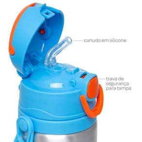 Características: Produzida em alumínio, é resistente, higiênico e fácil de limpar Pode ser utilizada para armazenar água, sucos e chás Canudo macio de silicone Trava de segurança para a tampa Com alças antiqueda que facilitam o transporte Ideal para levar em passeios e viagens Produto livre de BPA e ftalatos