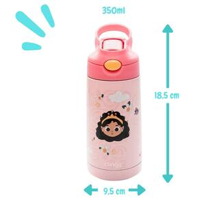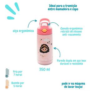 Com uma capacidade de 350 ml, essa garrafa térmica oferece uma quantidade adequada de líquido sem ser pesada ou volumosa demais para ser carregada na mochila. O design prático inclui um canudo de silicone e um bico fácil de manusear, facilitando o uso pelas crianças. O canudo de silicone é macio e seguro, proporcionando conforto e segurança durante o uso. Além disso, o bico ergonômico permite que as crianças abram e fechem a garrafa com facilidade, incentivando a autonomia.
