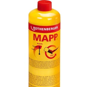 O Gás Mapp Rothenberger é uma mistura de gases especiais para o mais alto desempenho, mesmo de cabeça para baixo (360)