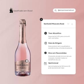 O Gaseificado sem Álcool Garibaldi Moscato Rosé 750 mL é um espumante sofisticado e inclusivo, elaborado na Serra Gaúcha com uvas Moscato, Bordô e Isabel, que entrega coloração rosada intensa, perlage delicado e aromas marcantes de frutas vermelhas e flores frescas. Com dulçor equilibrado, refrescância e zero teor alcoólico, é ideal para gestantes, crianças, motoristas e todos que desejam celebrar com elegância e segurança. Versátil, harmoniza com sobremesas, frutas, carnes brancas ou compõe coquetéis sem álcool, oferecendo a experiência sensorial de um espumante tradicional sem os efeitos do álcool.