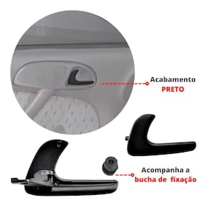 CONTEÚDO DA EMBALAGEM 01 Gatilho interno da Maçaneta – Porta Dianteira – Lado Esquerdo 01 Gatilho interno da Maçaneta – Porta Dianteira – Lado Direito 01 Gatilho interno da Maçaneta – Porta Traseira – Lado Esquerdo 01 Gatilho interno da Maçaneta – Porta Traseira – Lado Direito